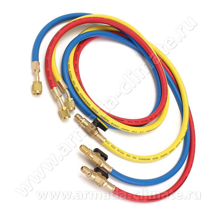Комплект заправочных шлангов СТ-360 RYB-HV (1,5м) R-410 с кранами.